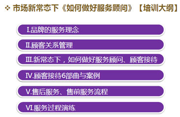 顾问师在首次进入贵公司辅导时会先启动项目会议,确定实施目标及标地水平,再以集中式的培训方式举行课程,让相关人员了解到强化售后服务的内容和精神等。顾问师会配合贵公司高阶主管及相关干部举行全体员工参加的实施动员大会,以令相关人员有足够的重视和意识,因再好的计划执行,若没有高阶领导的主导与决心,一切拯救计划都只会流于形式,终究走到失败的地步。